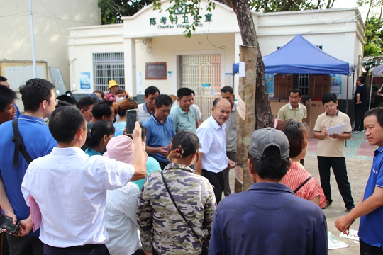 邢壮福在乐东县陈考村委会为胶农讲解割技术要领。